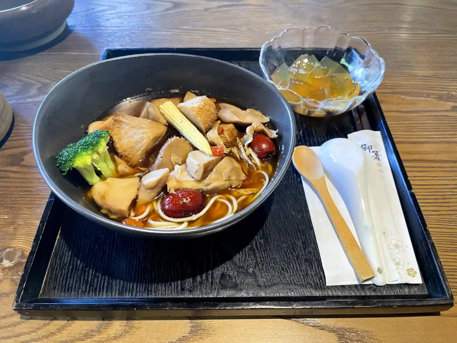 茶湯麻油鮮菇麵有加酒!茶湯!麻油麵!